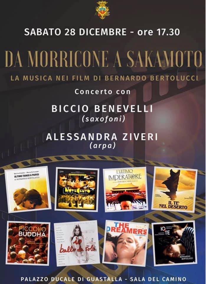 Saranno proiettati i video dei Trailer dei Film sulle musiche eseguite ed arrangiate da Fabrizio Benevelli (saxofoni) e Alessandra Ziveri (arpa). Letture a cura di Fiorello Tagliavini, direttore del Teatro Comunale “Ruggero Ruggeri”, leggerà testi con le sinossi, nomi di musicisti, sceneggiatori, attori e tanto altro.